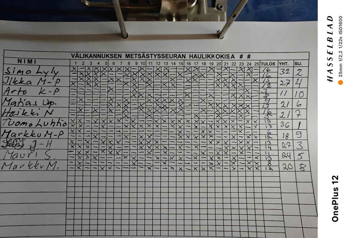 | 4 | 7 | Janne Isohanni | 75 | 85 | 135 | 160 | 486 | 10 | 10 | 10 | 10 | 10 | 9 | 8 | 8 | 8 | 5 | 88 | 528 | 1014 |